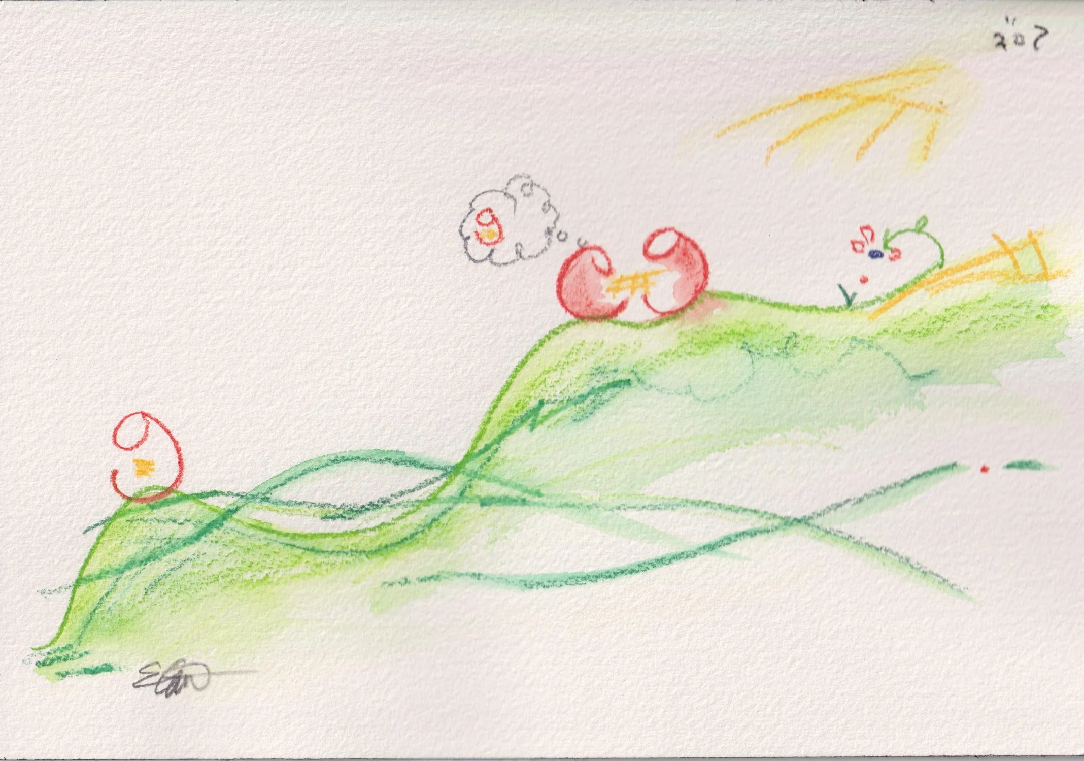 These works of art, like the above meditations, can be used for visualization. Because they are the client's personal story, it will help them along in whatever transition they are looking to make. Journey Drawings are Art as Medicine.